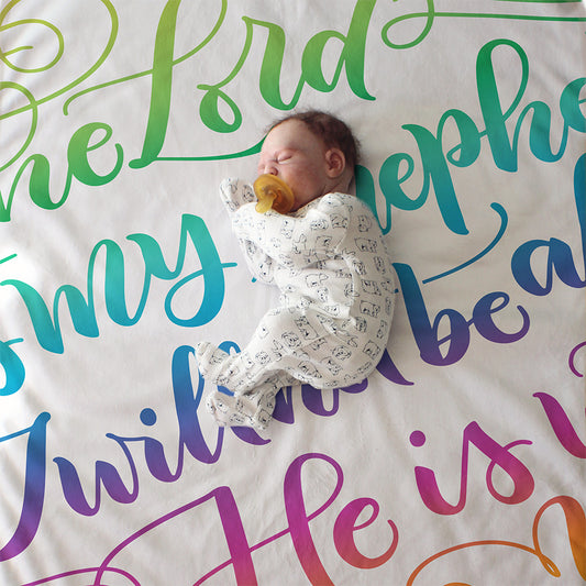 The Lord is my shepherd - Psalm 23 - Rainbow Lightweight Swaddle