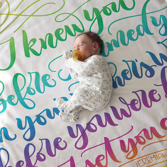 I knew you before I formed you - Jeremiah 1:5 - Rainbow Velveteen Blanket
