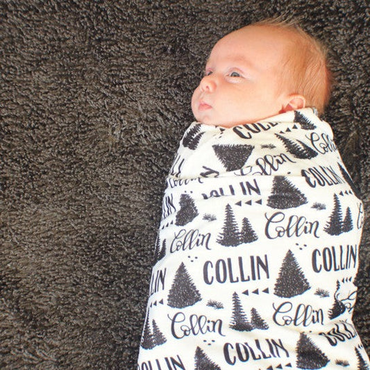 Personalized Swaddle - Pine forest in custom color