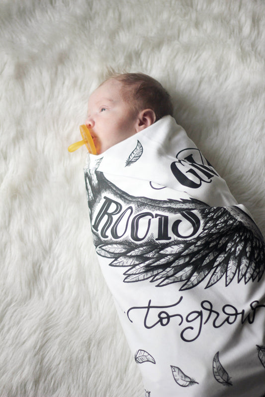 Swaddle - Organic cotton - LAP SIZE - I will give you wings to fly and roots to grow - SALE
