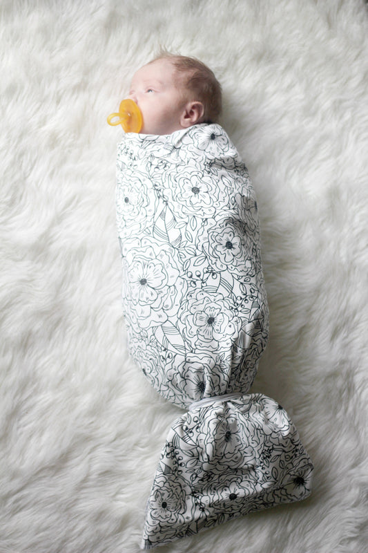 Swaddle - Organic cotton - LAP SIZE - Big blooms outlined - SALE