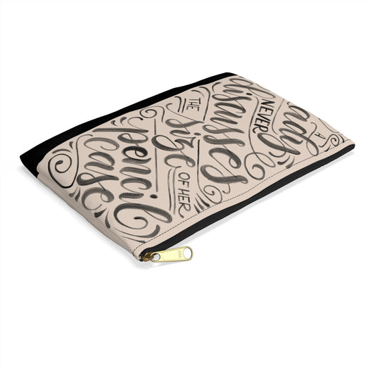 A lady never discusses the size of her pencil case - Tan Zipped Pouch